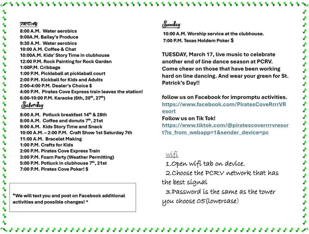 Welcome to Pirates Cove RrrrV Resort, where our RV resort activities promise an unforgettable experience for all ages.